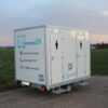 Im Preis sind Toilettenpapier, Papierhandtücher, Flüssigseife und Abfallbeutel bereits enthalten. Benötigt wird ein Gartenschlauch, eine Kabeltrommel (230V) und idealerweise ein Gully (Zugang zu eigener Kanalisation).